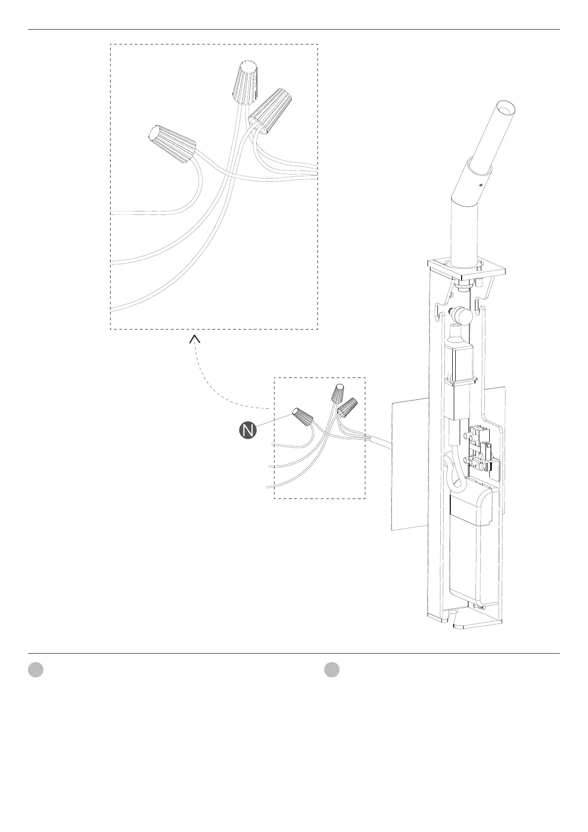 of the supply circuit. Secure with the electrical wire nuts (N) and