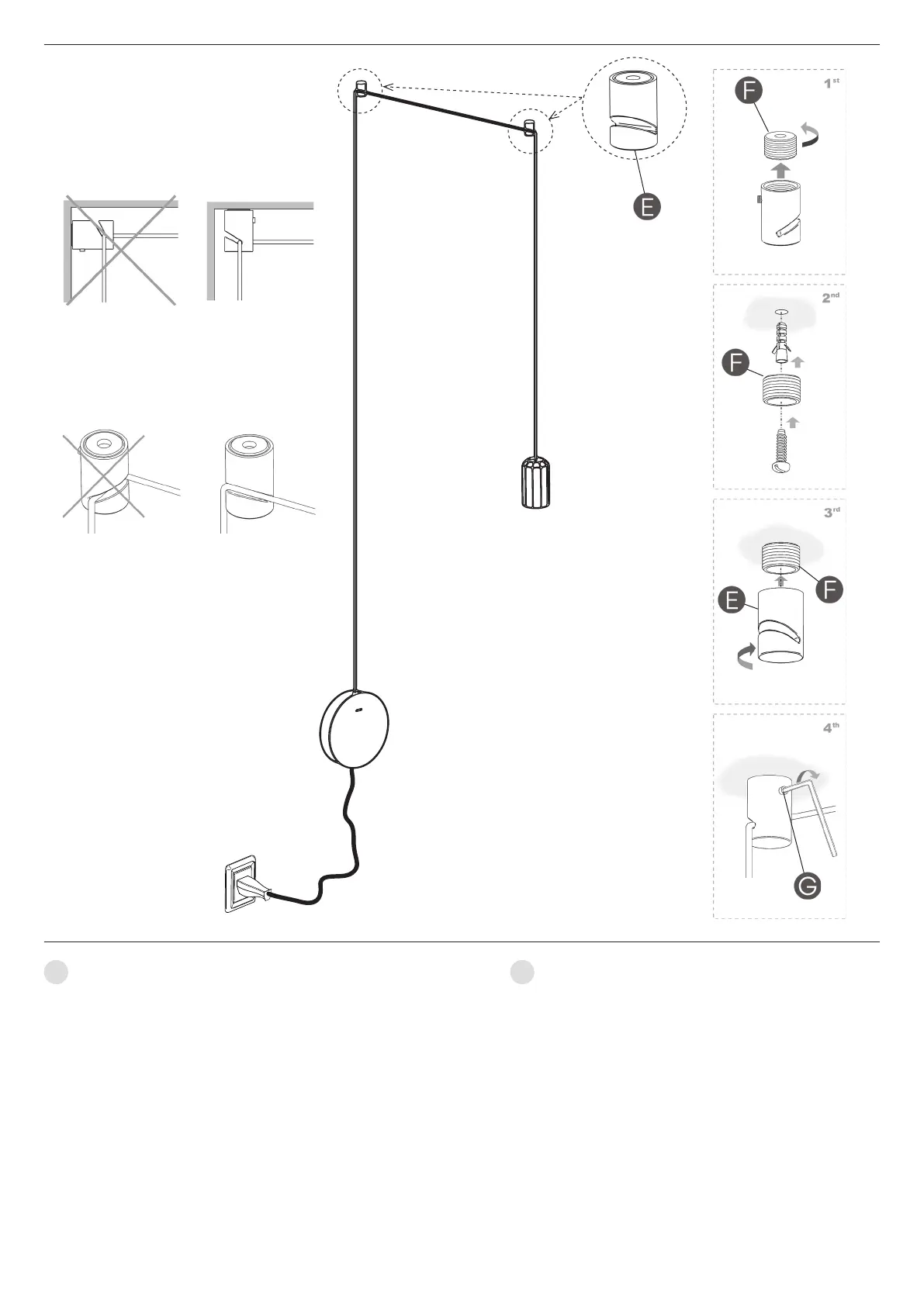 2- Fixez la pièce (F) au plafond en utilisant une vis et une cheville