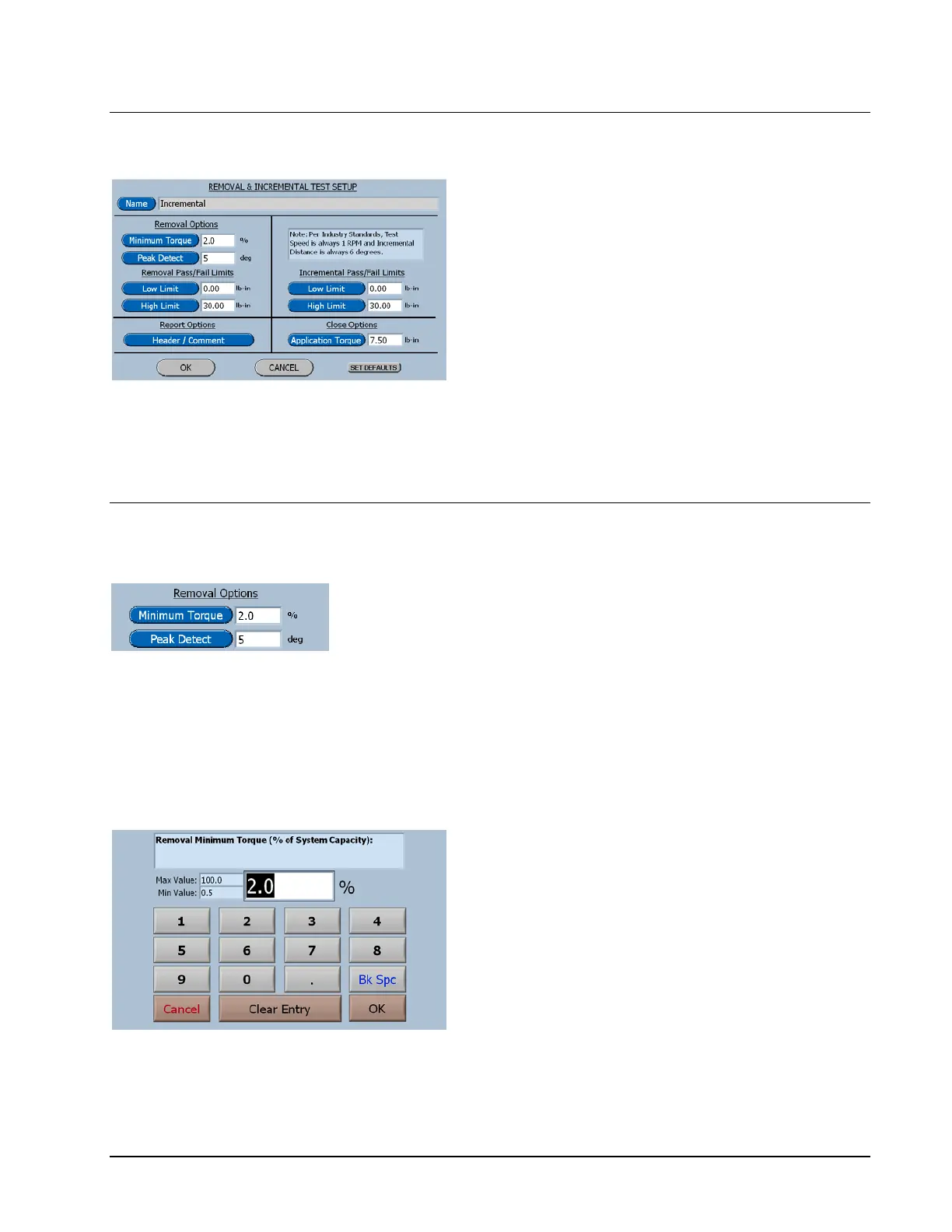 Removal & Incremental Test Setup Screen