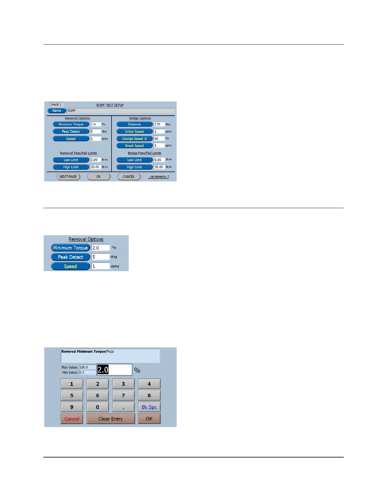 ROPP Test Setup Screens