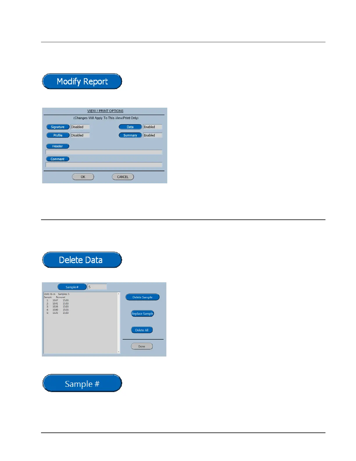 delete sample button are used for manipulating