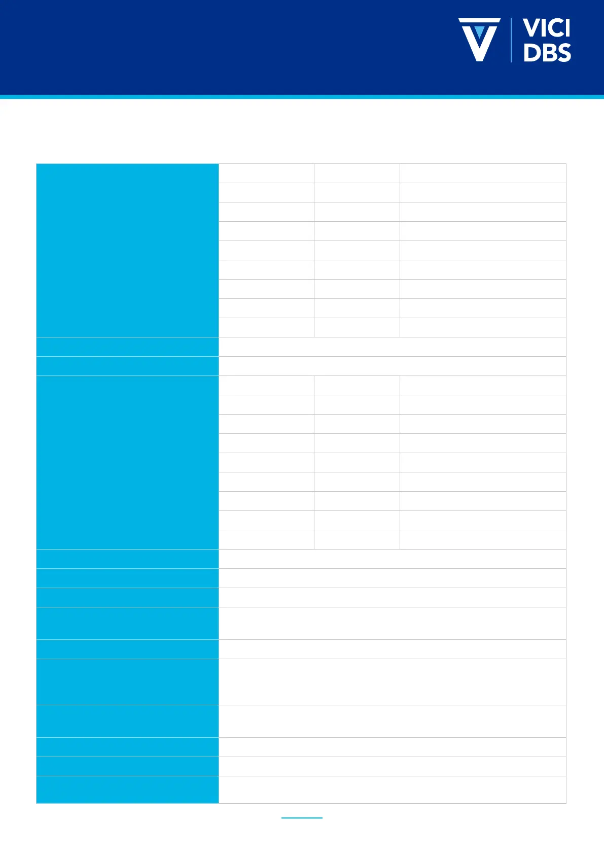 VICI DBS NM PLUS 100 - Specifications and Options; Detailed Product Specifications
