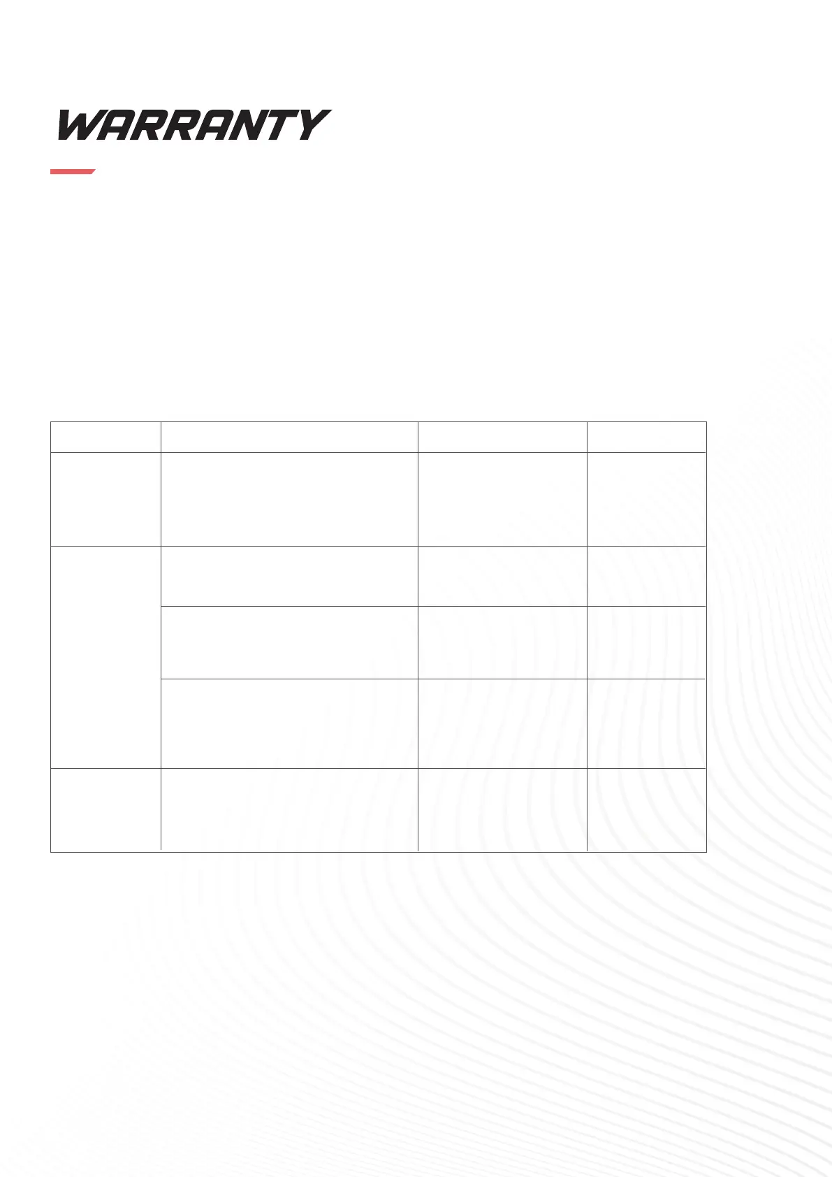 This table outlines what is covered by the warranty and what is excluded: