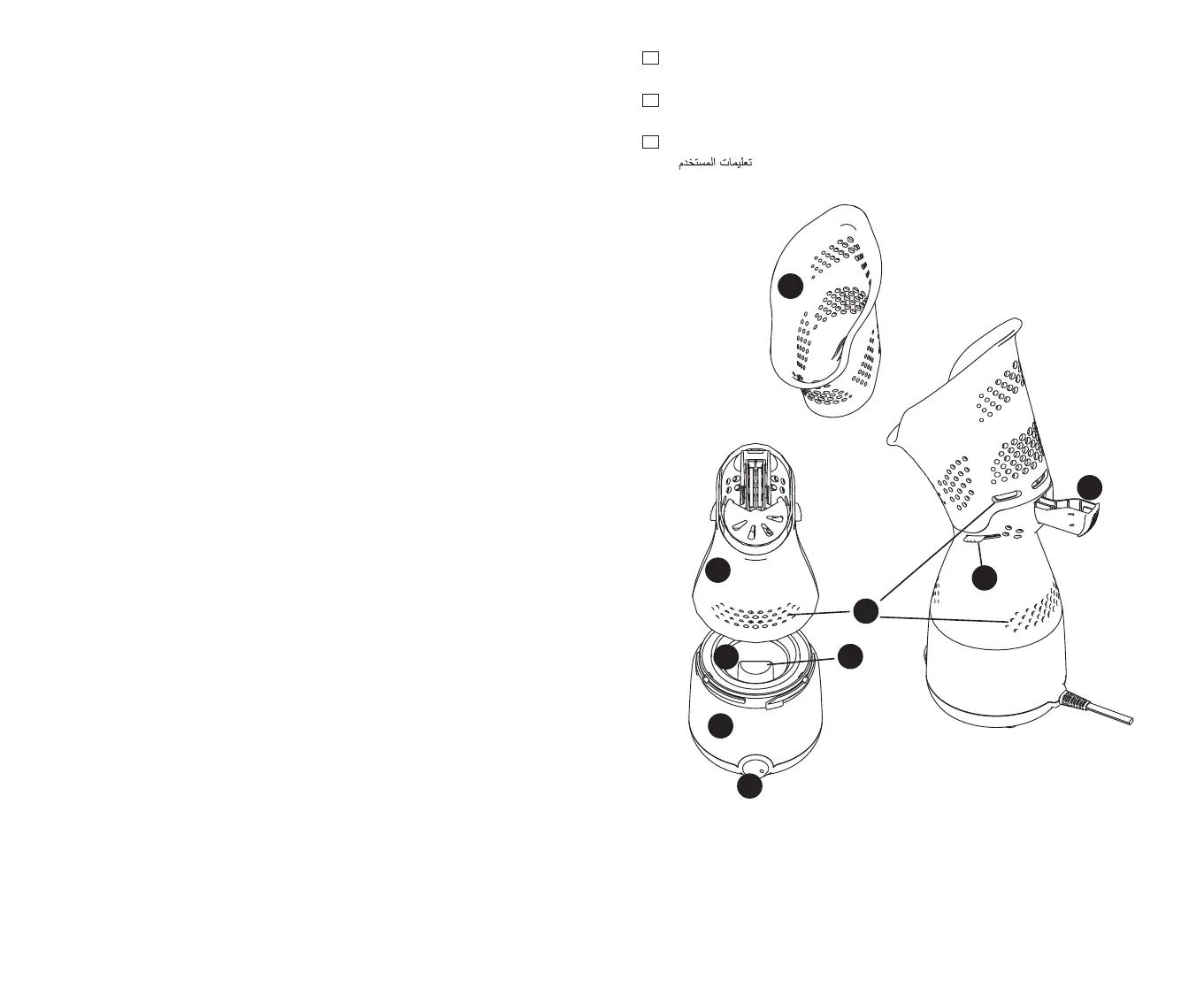 4. Steam Disk Controls 5. Base 6. Water Reservoir