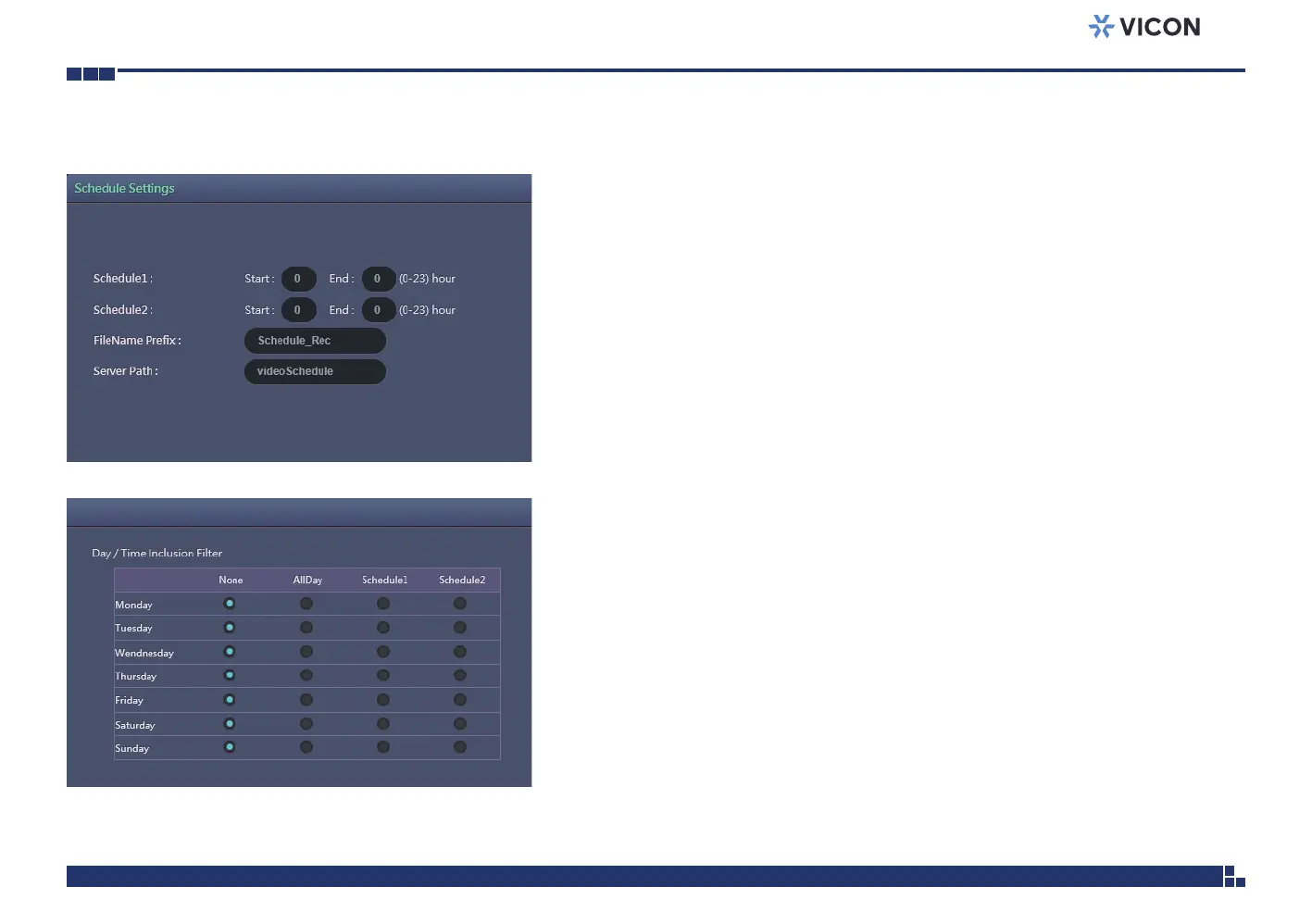 Schedule2 previously configured or AllDay for whole day recording can be