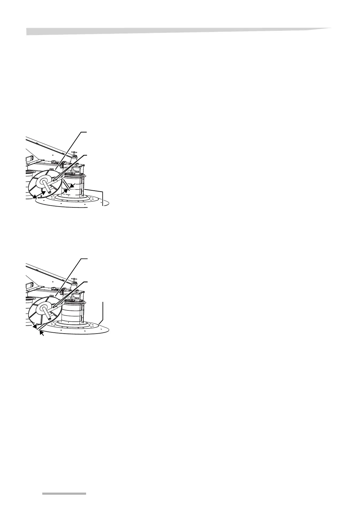 Distance B between the swath disc and the drum skirt must be be-