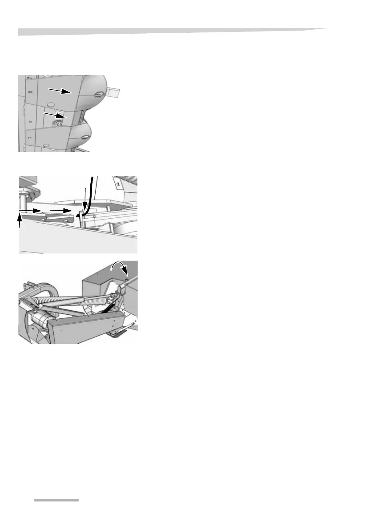 > Hold in the string and activate the tractor's hydraulics and lower the