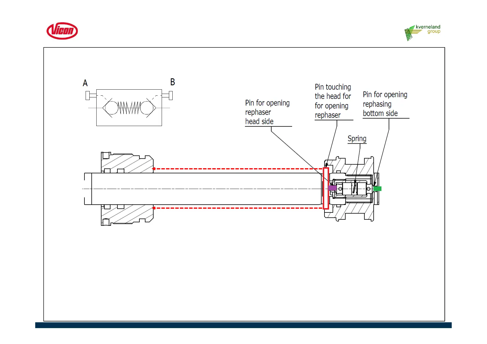 red pin will touch the head side and will push against the purple pin to open the valve.