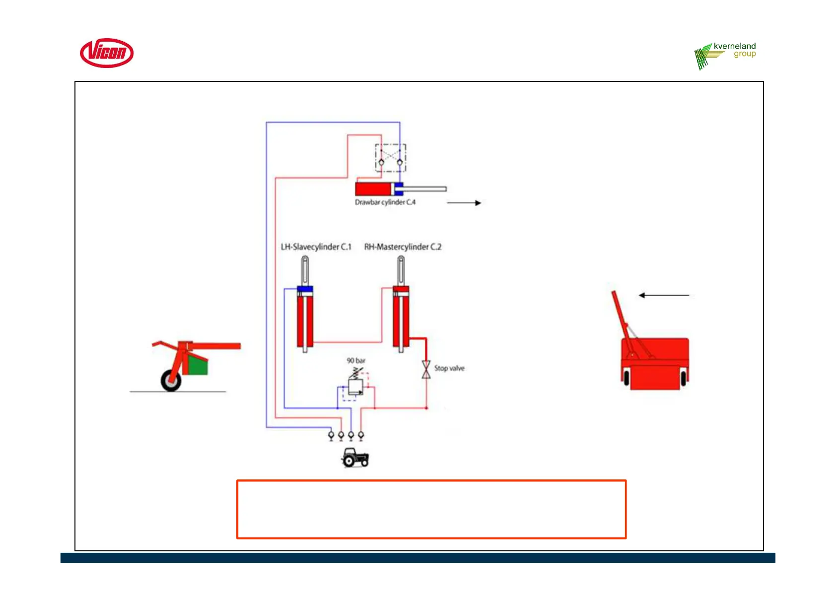 Hydraulic diagram - steering cylinder goes out to working position with unit in transport position