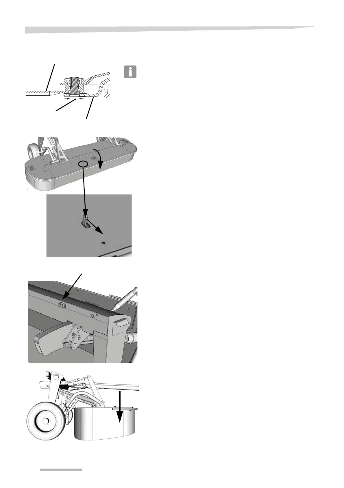 Activate the tractor hydraulics and lower the cutting unit of the