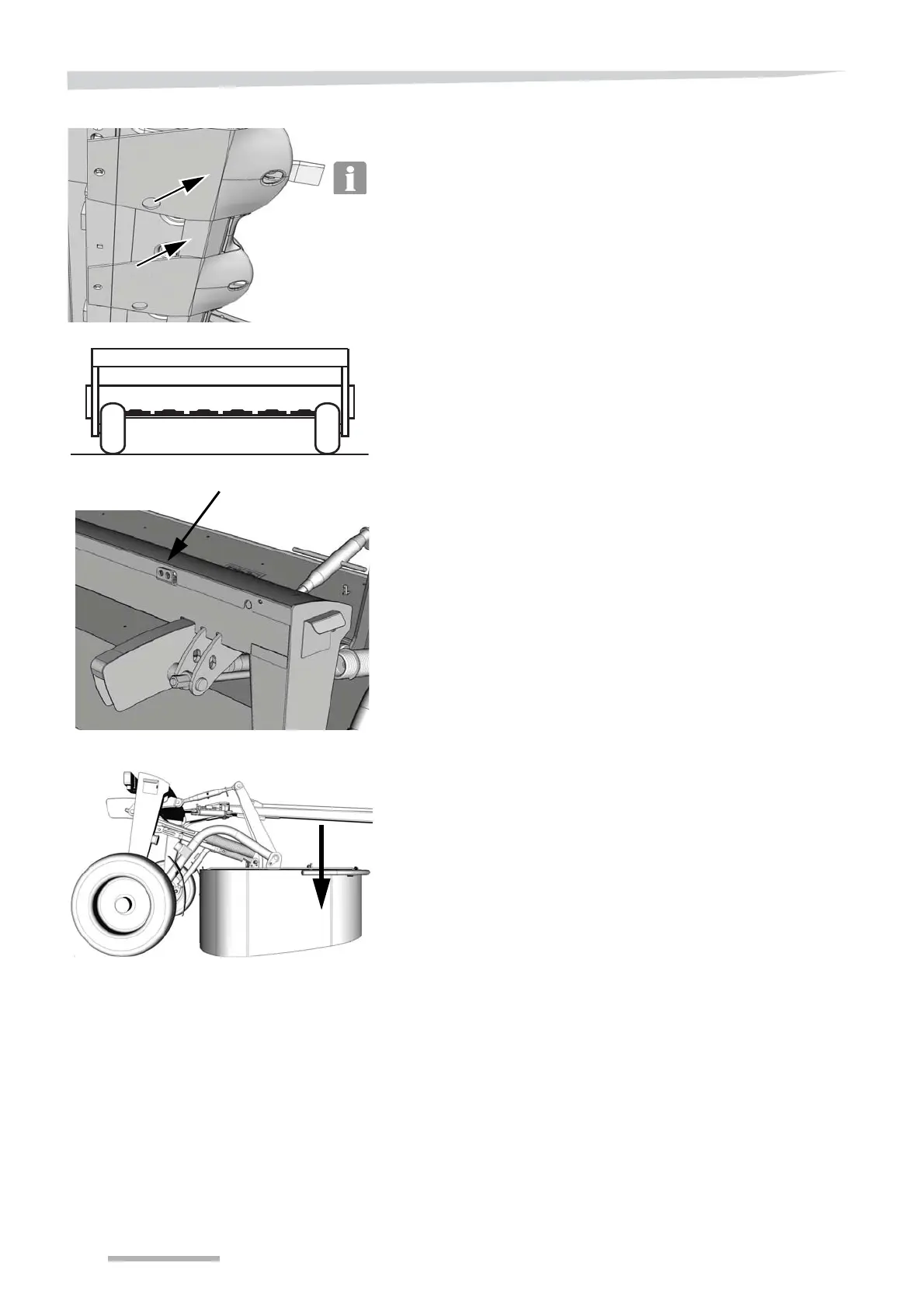 Activate the tractor hydraulics and lower the cutting unit of the