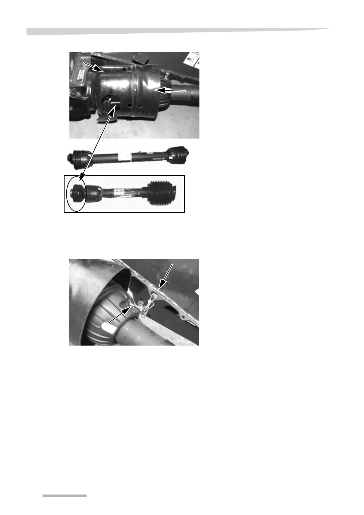 Secure the PTO shaft with the chain as shown.