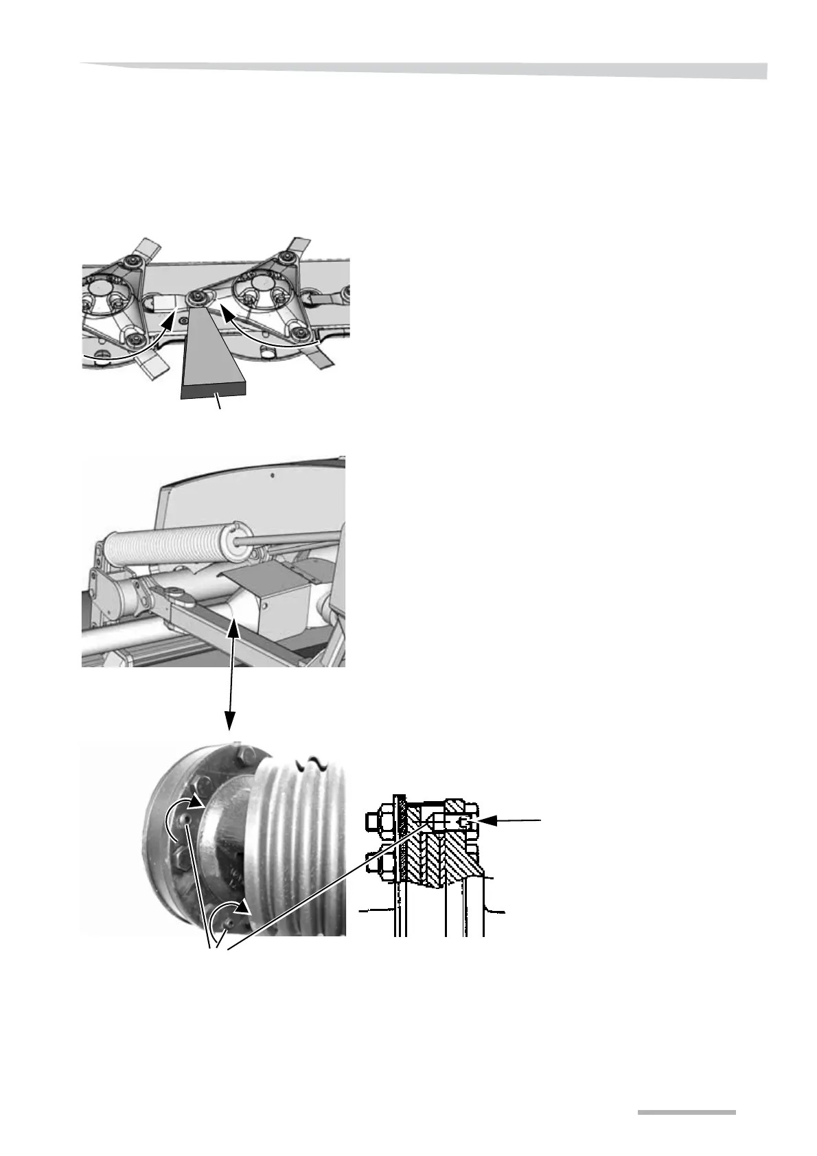 > Block the cutter bar by placing a wooden block between the two