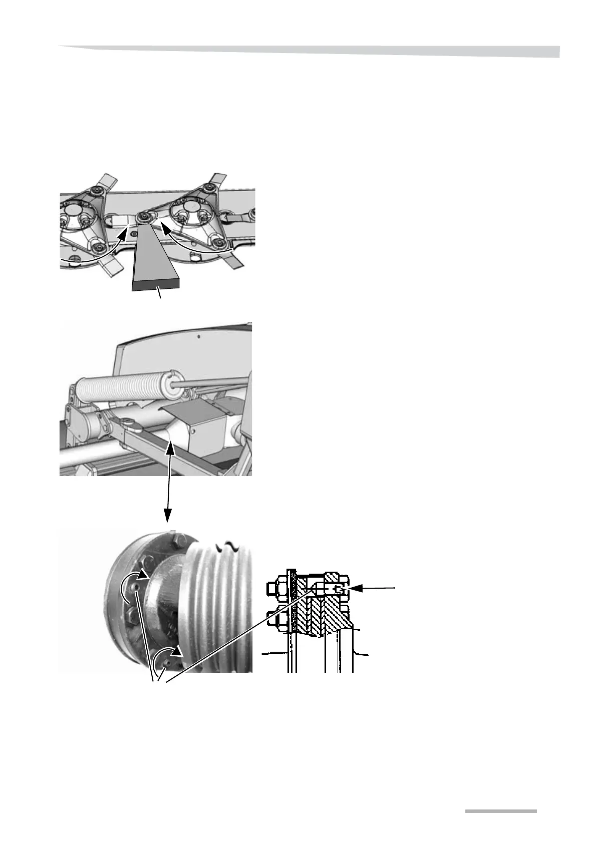 > Block the cutter bar by placing a wooden block between the two