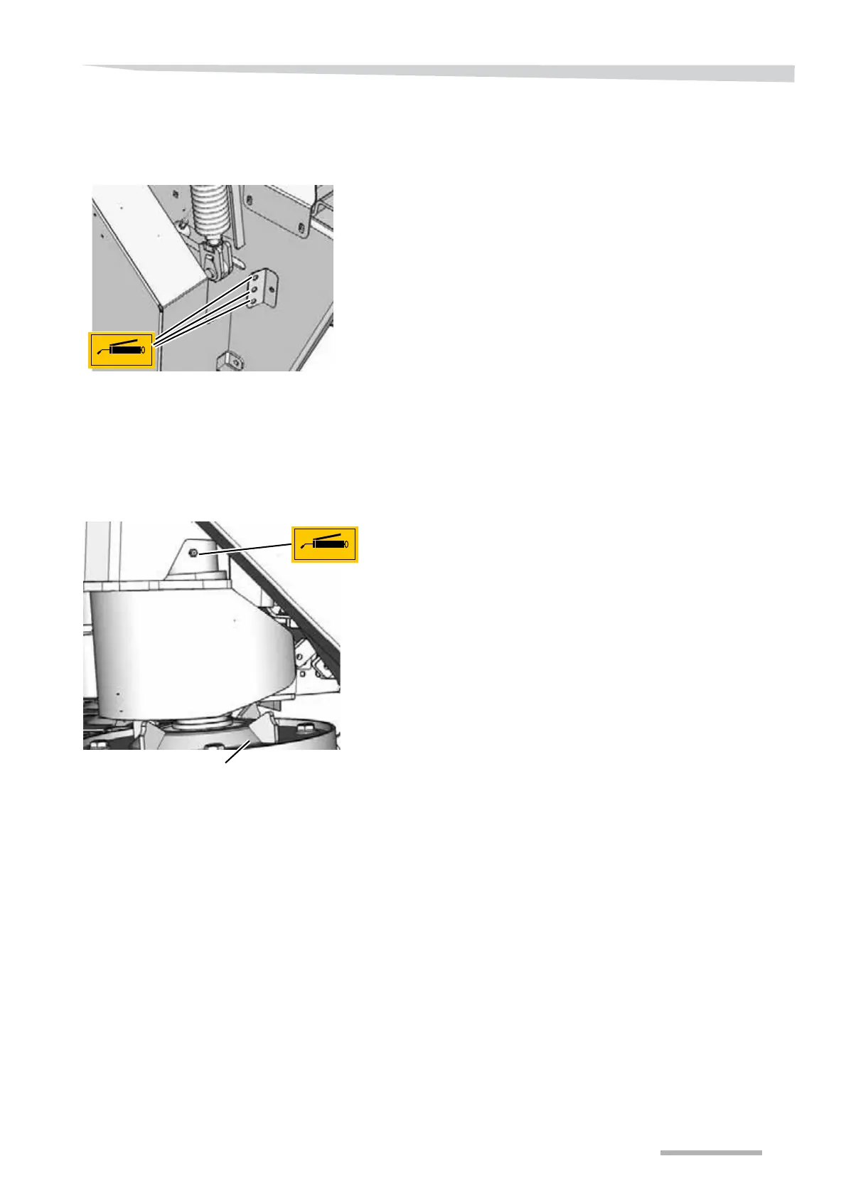 > Press the nozzle on the grease gun over the grease nipples.