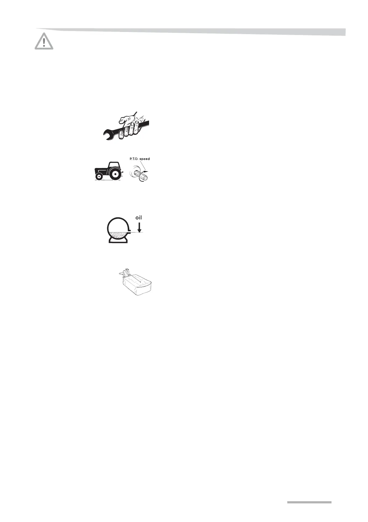 Connecting a tractor with P.T.O. is dangerous. = 540 revolutions per