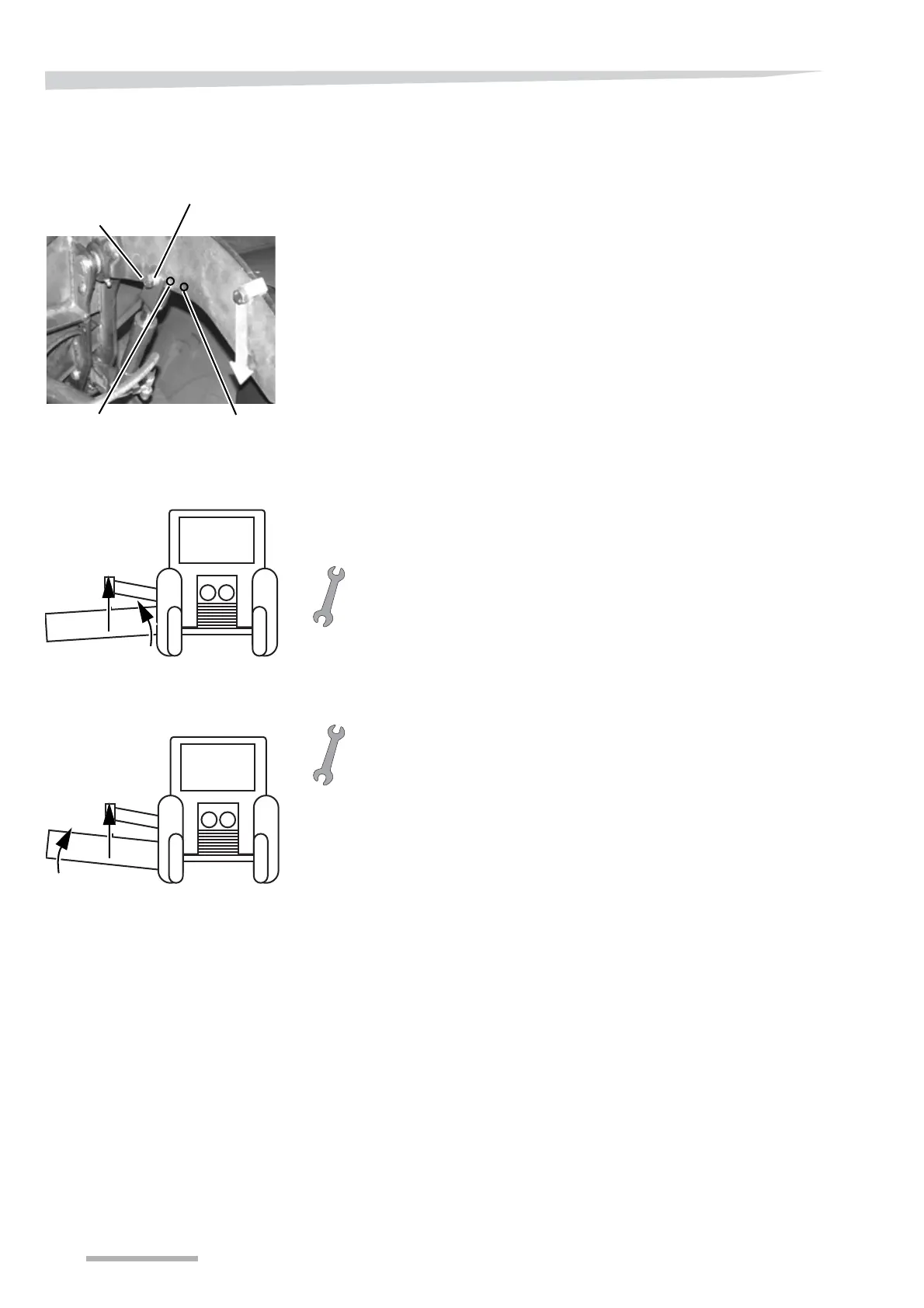 > Activate the tractor hydraulics and raise the cutting unit of the ma-