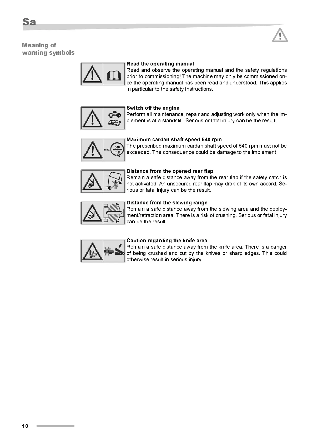 The prescribed maximum cardan shaft speed of 540 rpm must not be
