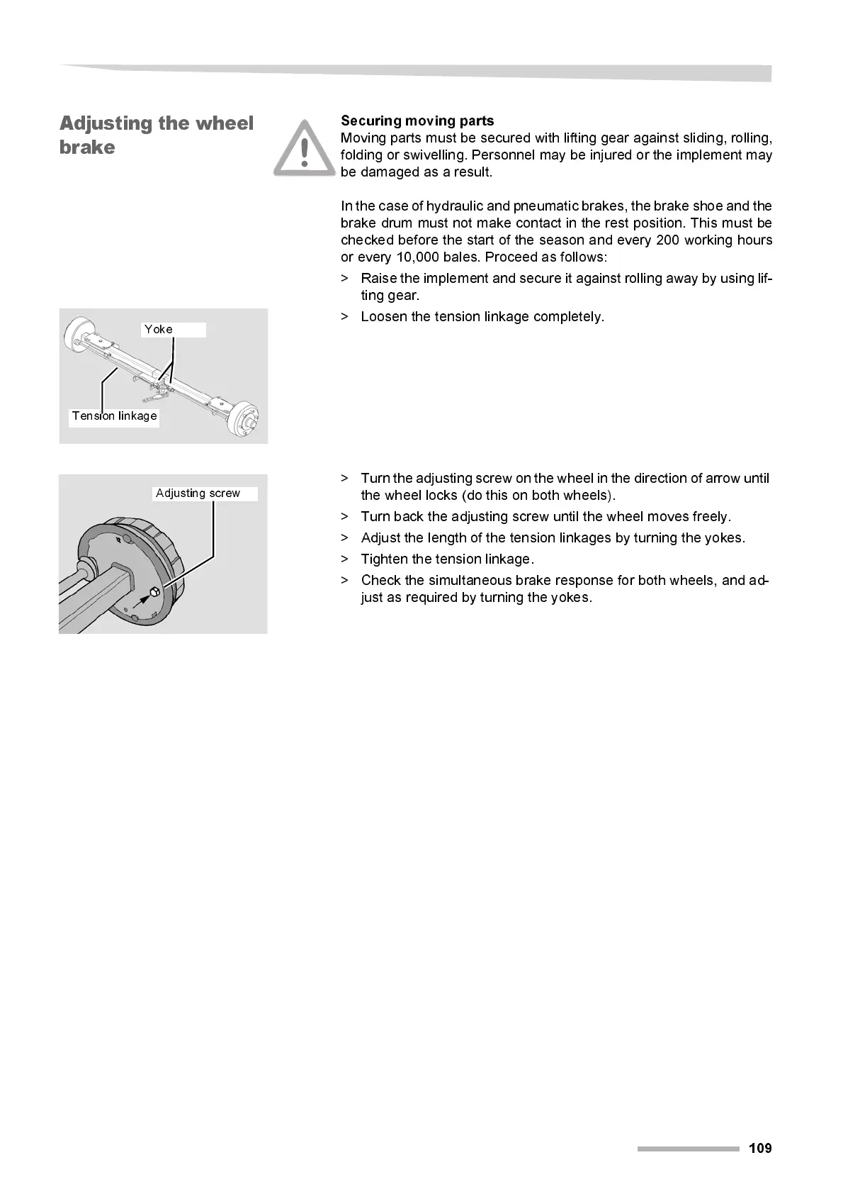 > Adjust the length of the tension linkages by turning the yokes.
