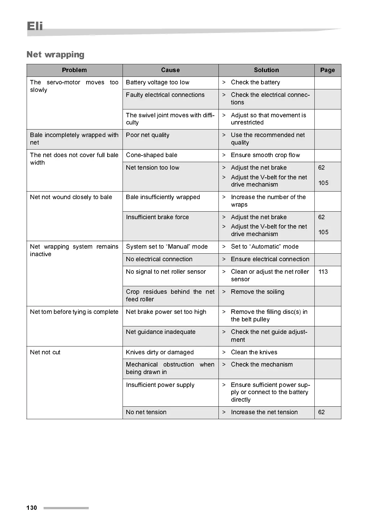 Net tor n befor e ty i ng is complete Net brake power set too high > Remove the fil l i ng di sc(s) i n