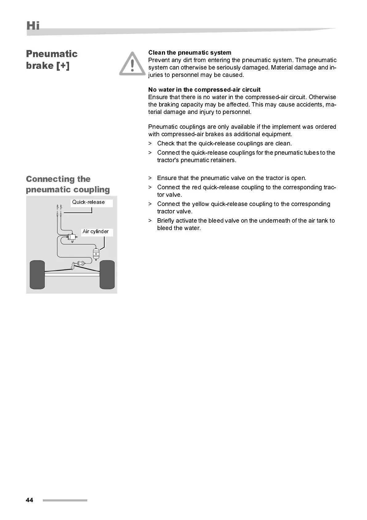 Pneumatic couplings are only avail abl e if the i mplement was order ed