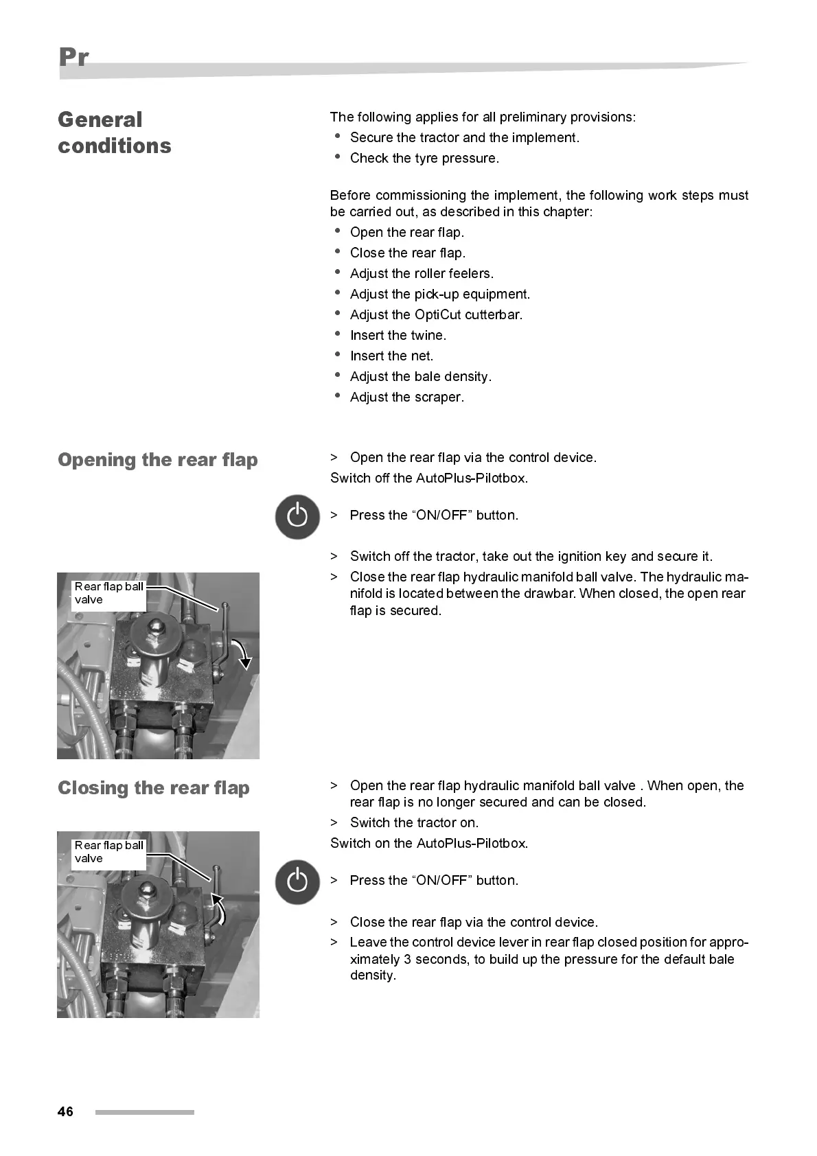 > Close the rear flap hydraulic manifold ball valve. The hydraulic ma-