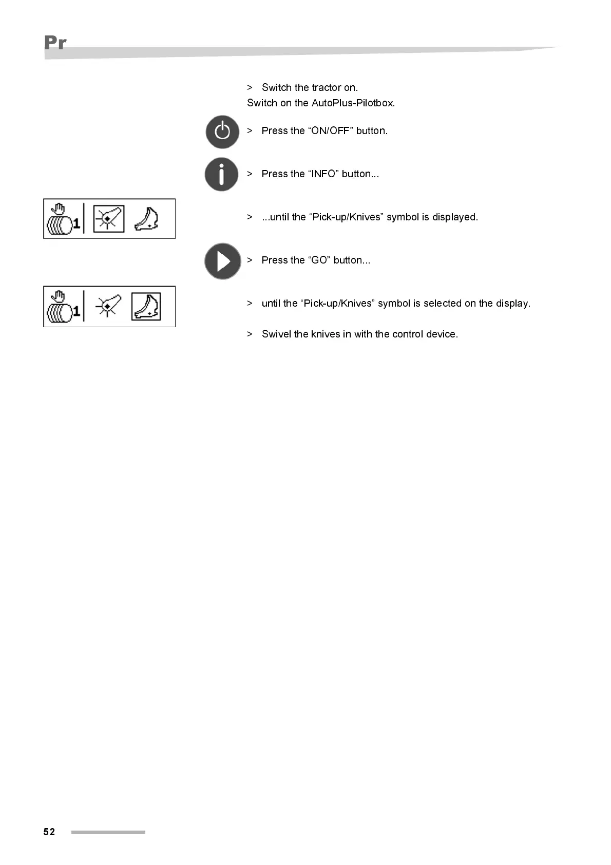 > unti l the “Pi ck-up/Kni ves” symbol is selected on the displ ay.