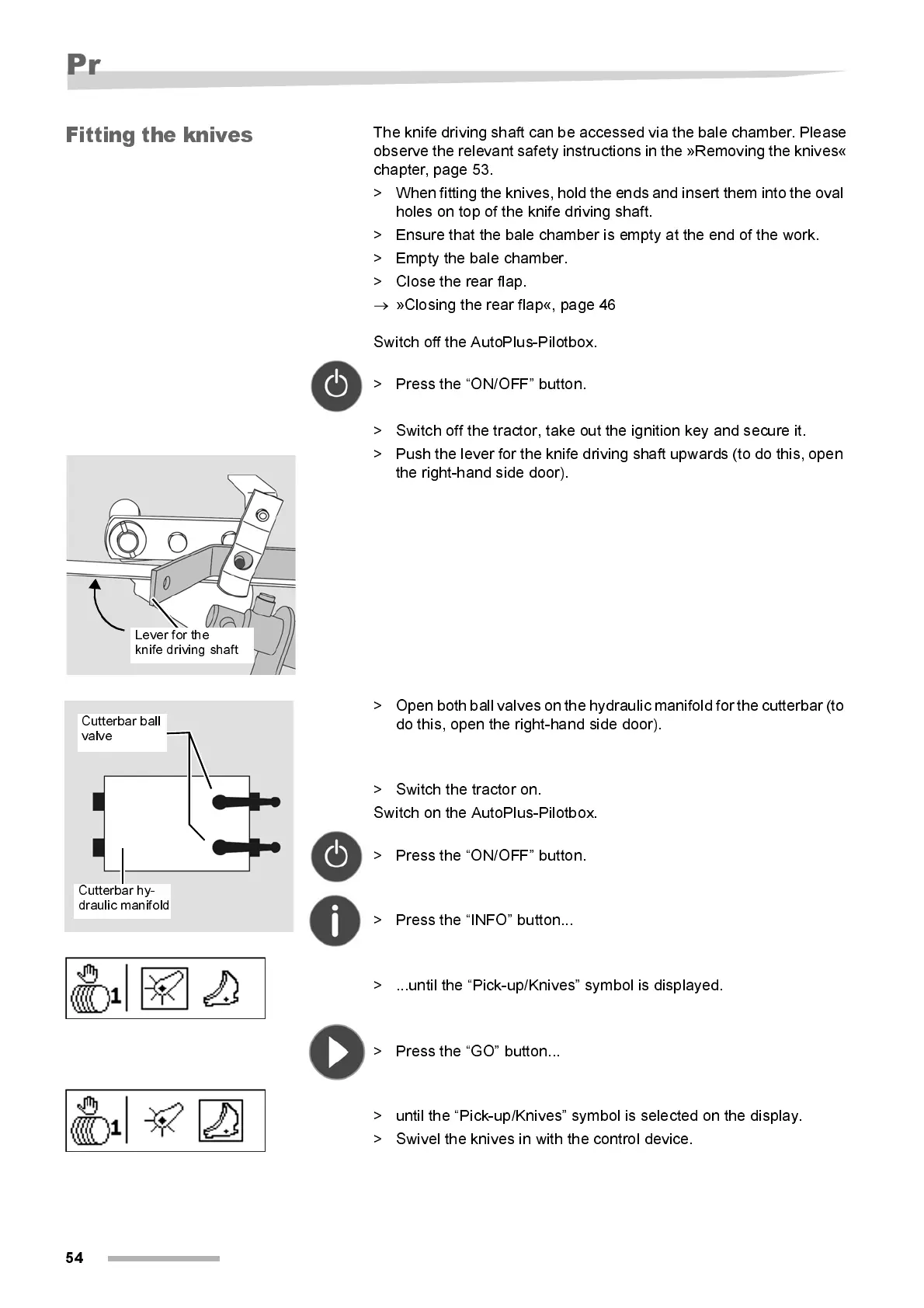 > unti l the “Pi ck-up/Kni ves” symbol is selected on the displ ay.