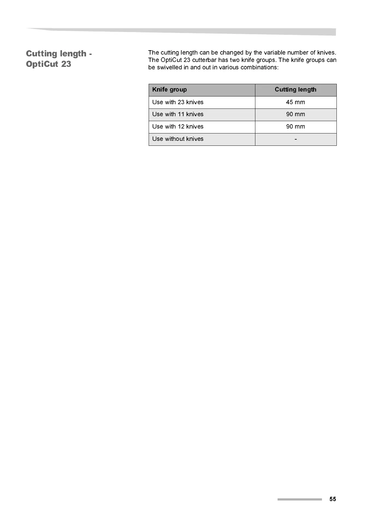 The Opti Cut 23 cutterbar has two knif e groups. The knife groups can