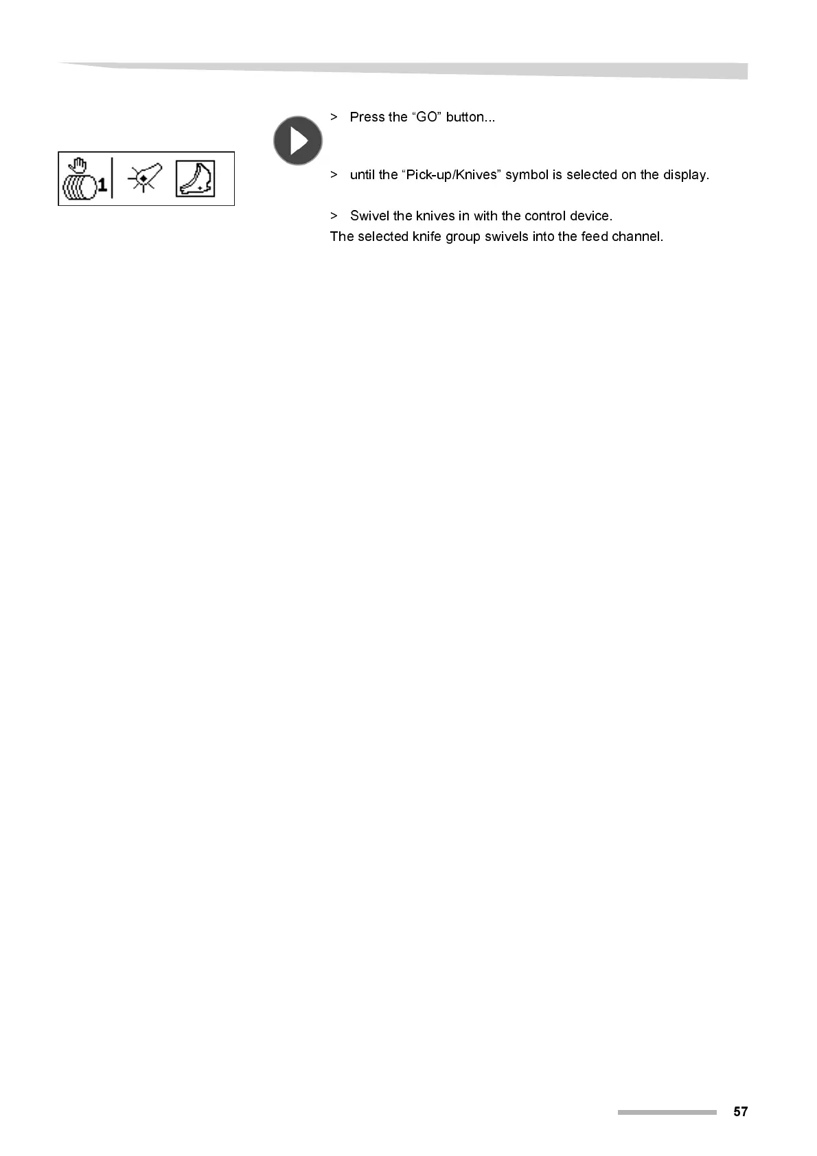 > unti l the Pi ck-up/Kni ves” symbol is selected on the displ ay.