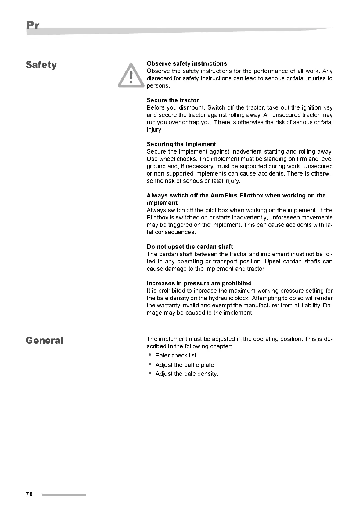 Al w ays sw i t ch off the pilot box w hen w orki ng on the i mpl ement. If t he