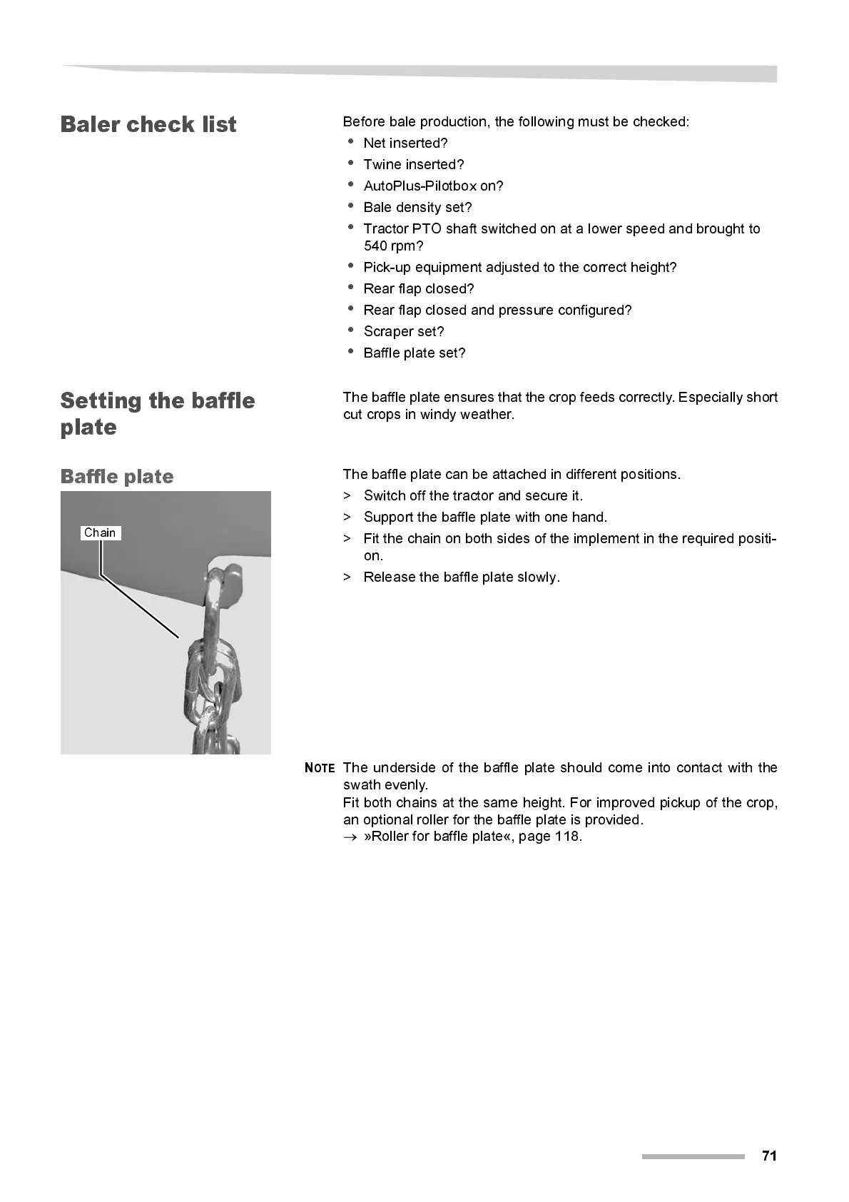 »Roller for baffle plate«, page 118.