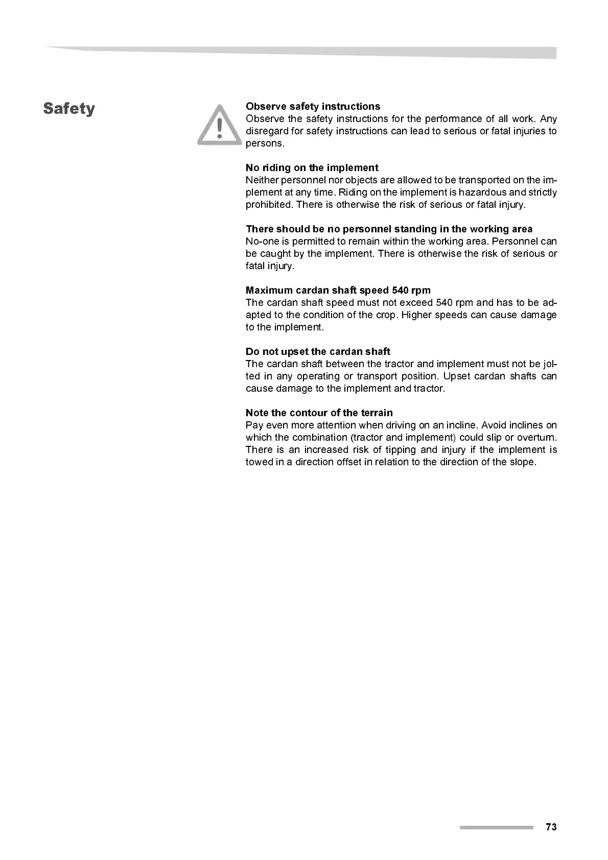 The cardan shaft speed must not exceed 540 rpm and has to be ad-