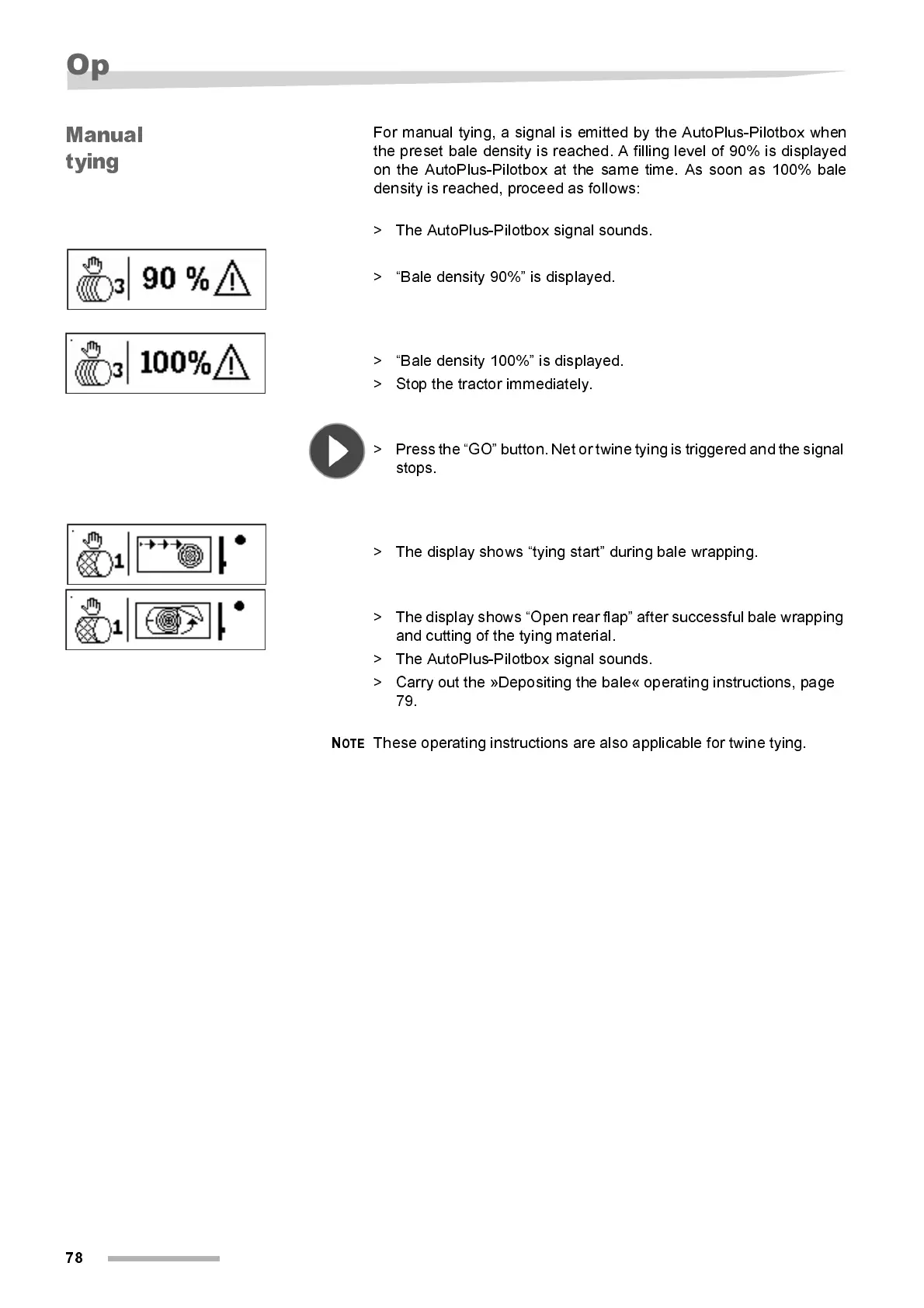 For manual tying, a signal i s emitted by the AutoPlus-Pilotbox when