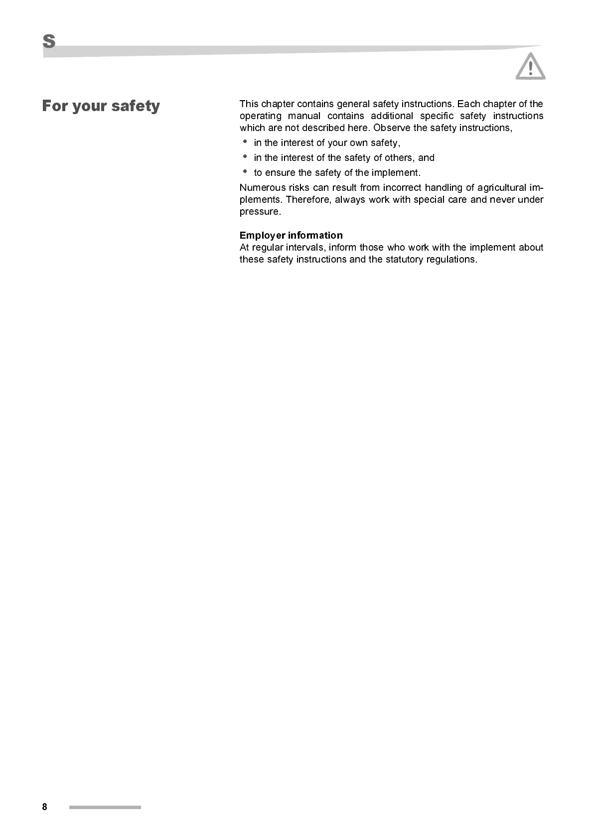 Numerous risks can result from incorrect handling of agricultural im-