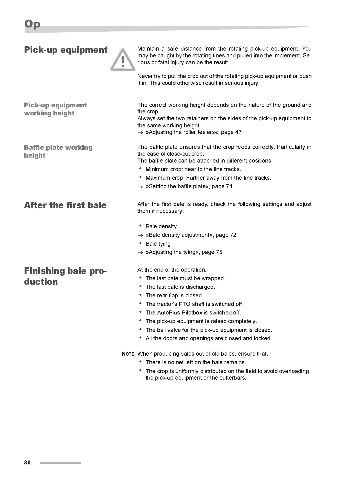 »Bale densit y adjustment«, page 72