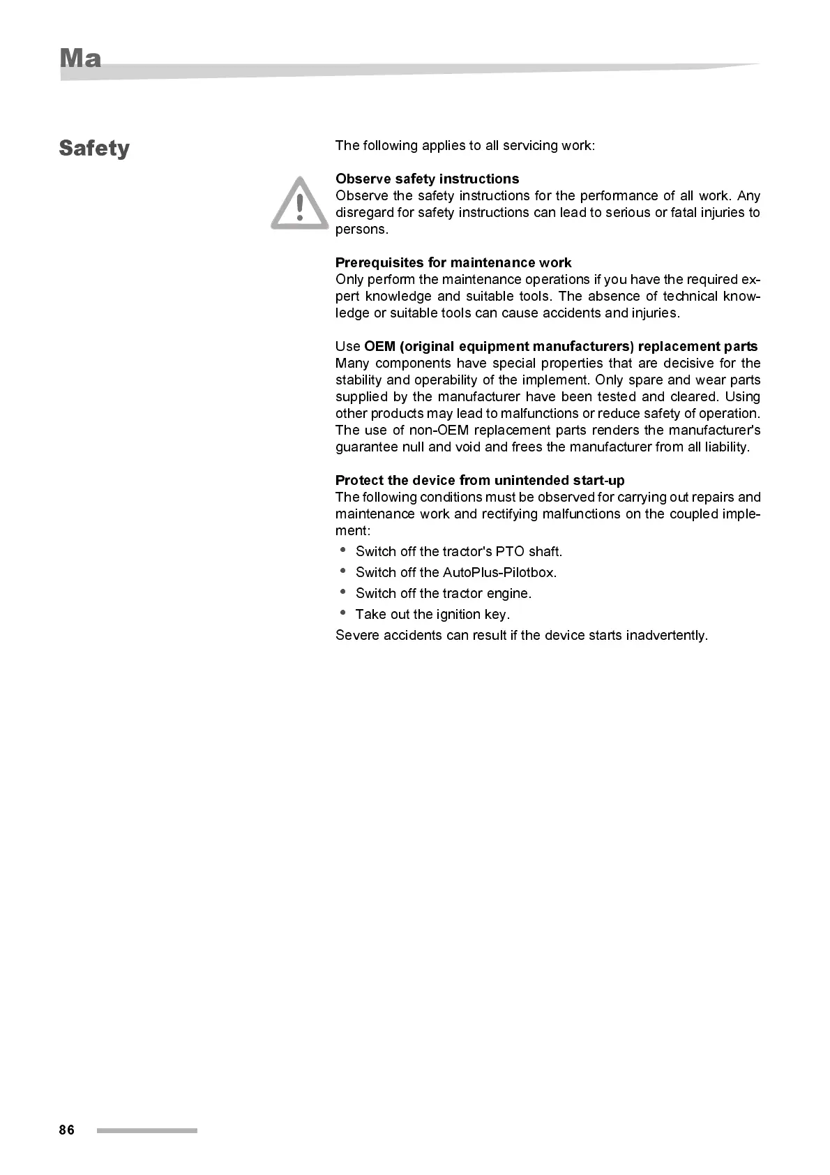 stabil ity and operabi lity of the i mplement. Only spare and wear parts
