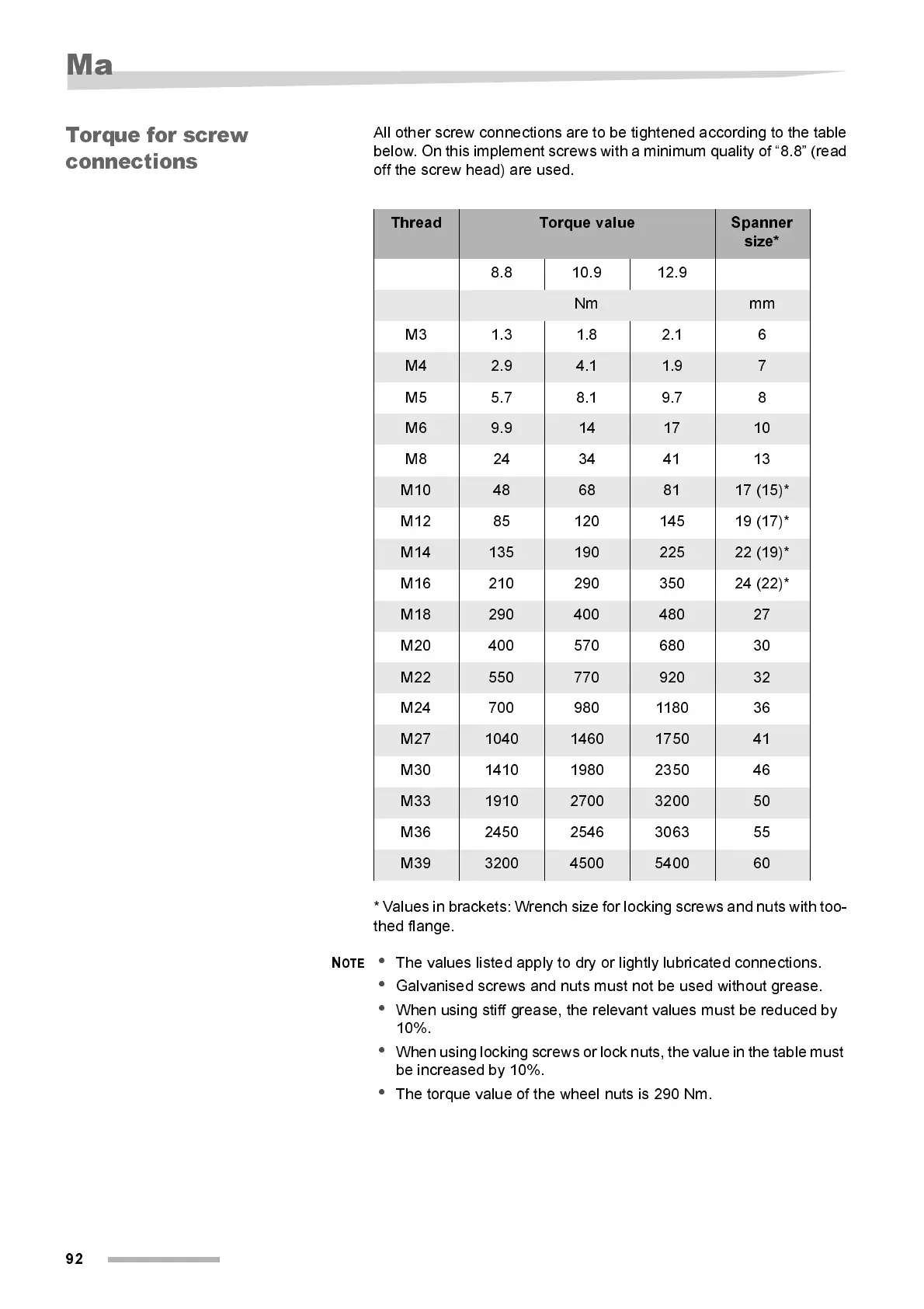 * V alues in brackets: W rench size for locking screws and nuts with too-