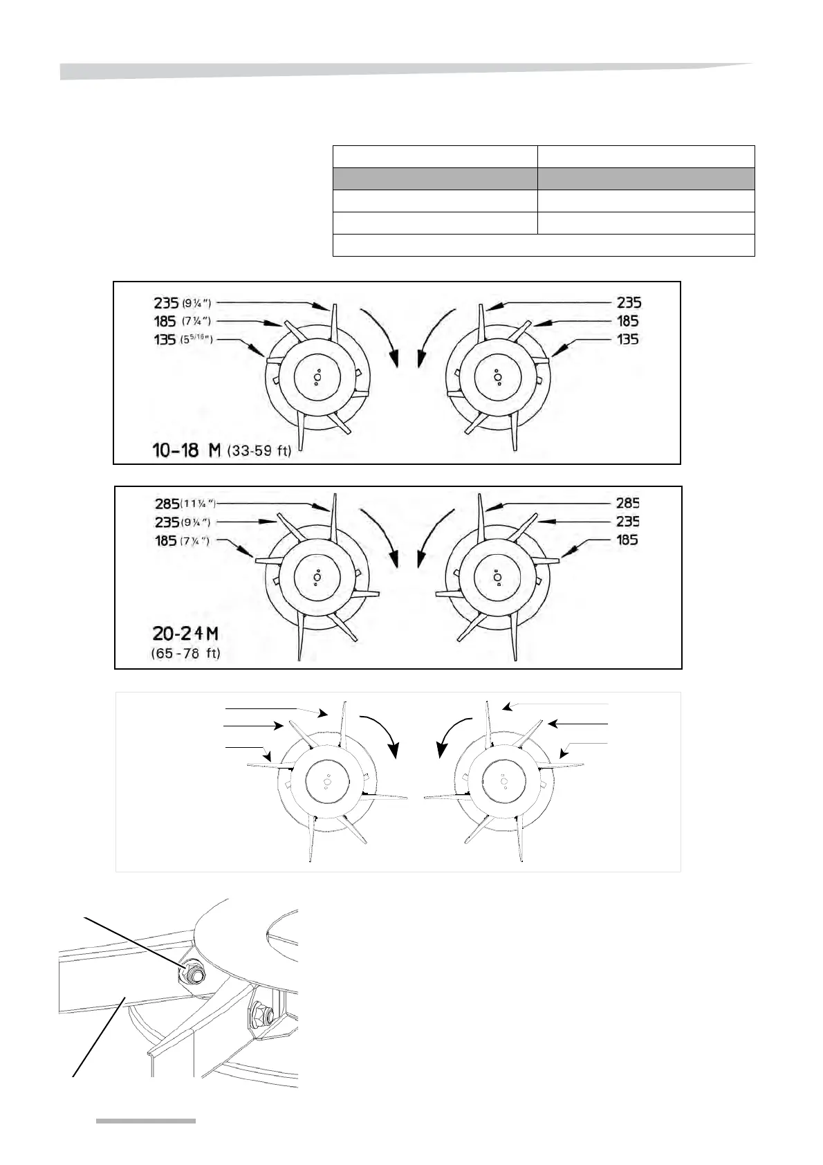 Working width (m) Vane combination