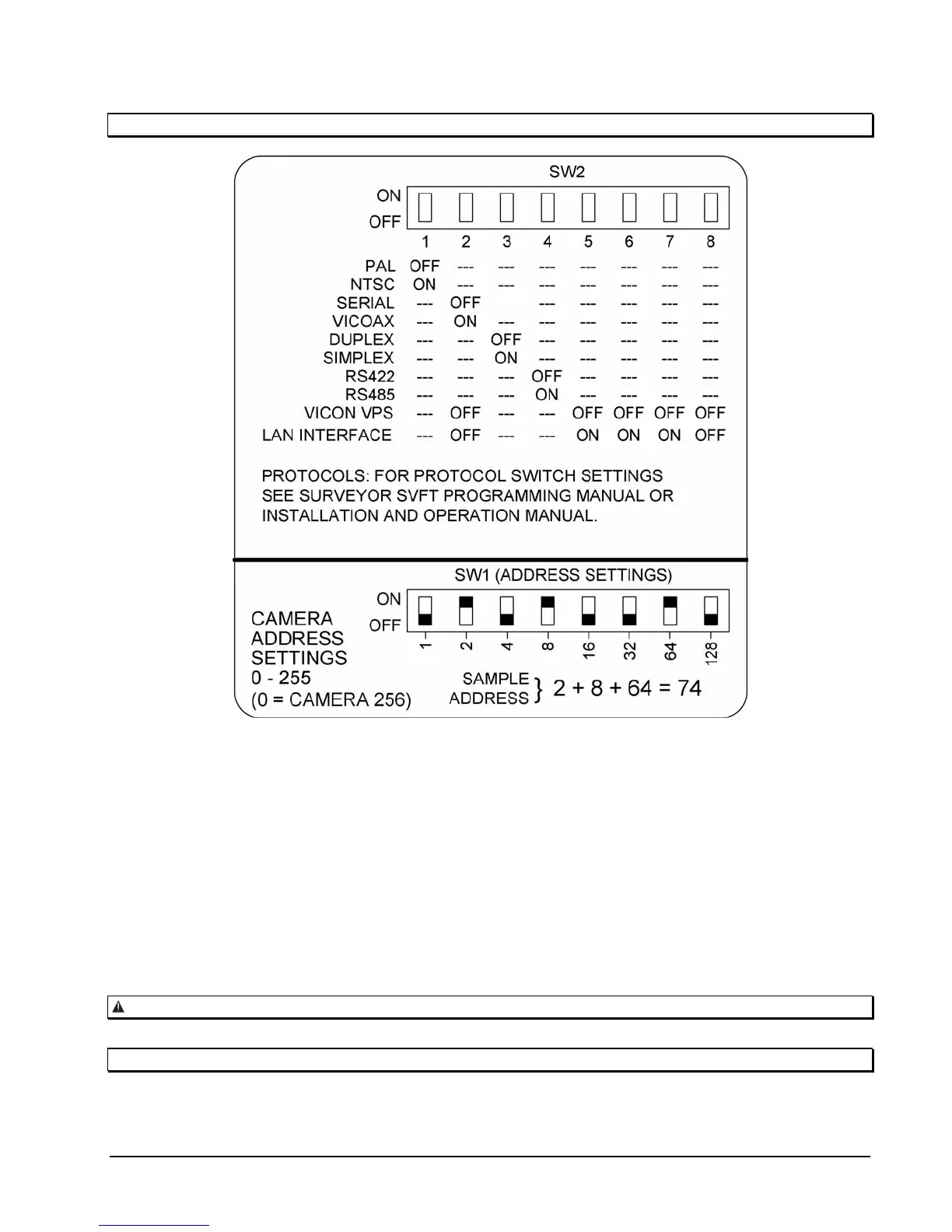 Note: For Pelco Keypad with 2400 baud, switch 3 on SW2 must be set to ON; Pelco is D protocol.