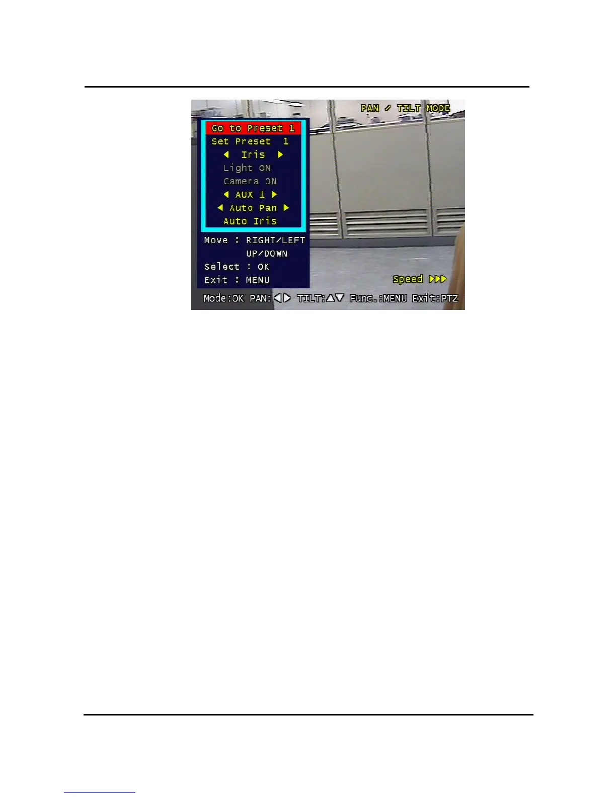 - Go to Preset : To move the Pan/Tilt drive to the position preset in Set Preset mode.