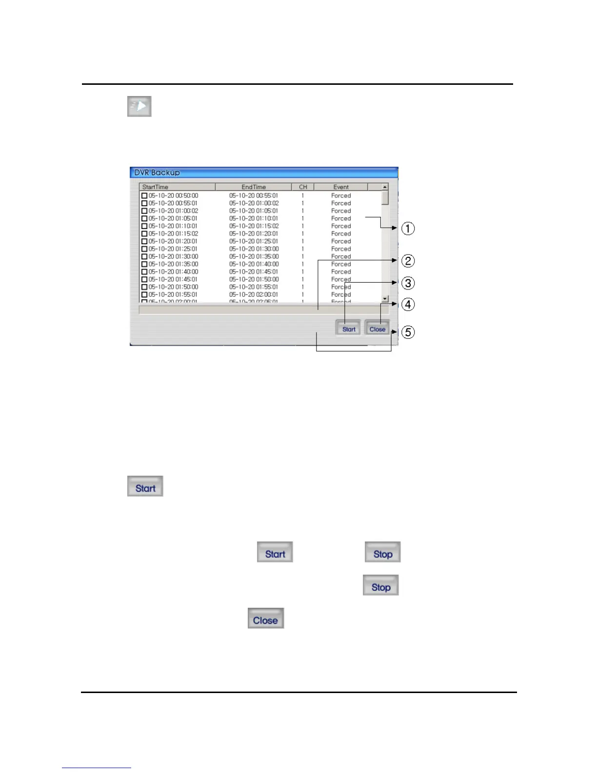 ③ Button for staring of backup. With pushing selected channel, start to backup