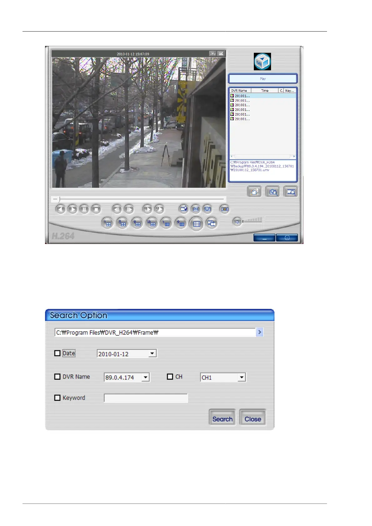 The search can be made according to the following information : still image saving folder, saved dates, DVR