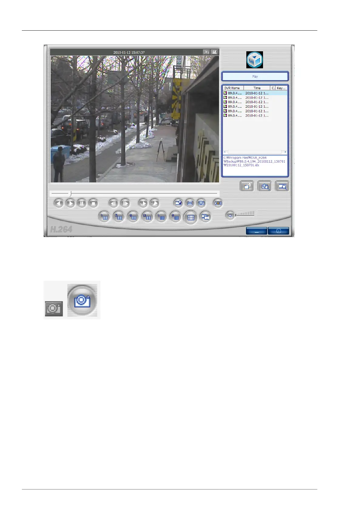 This button enables you to capture and save the still image from the video data. The still image can be captured