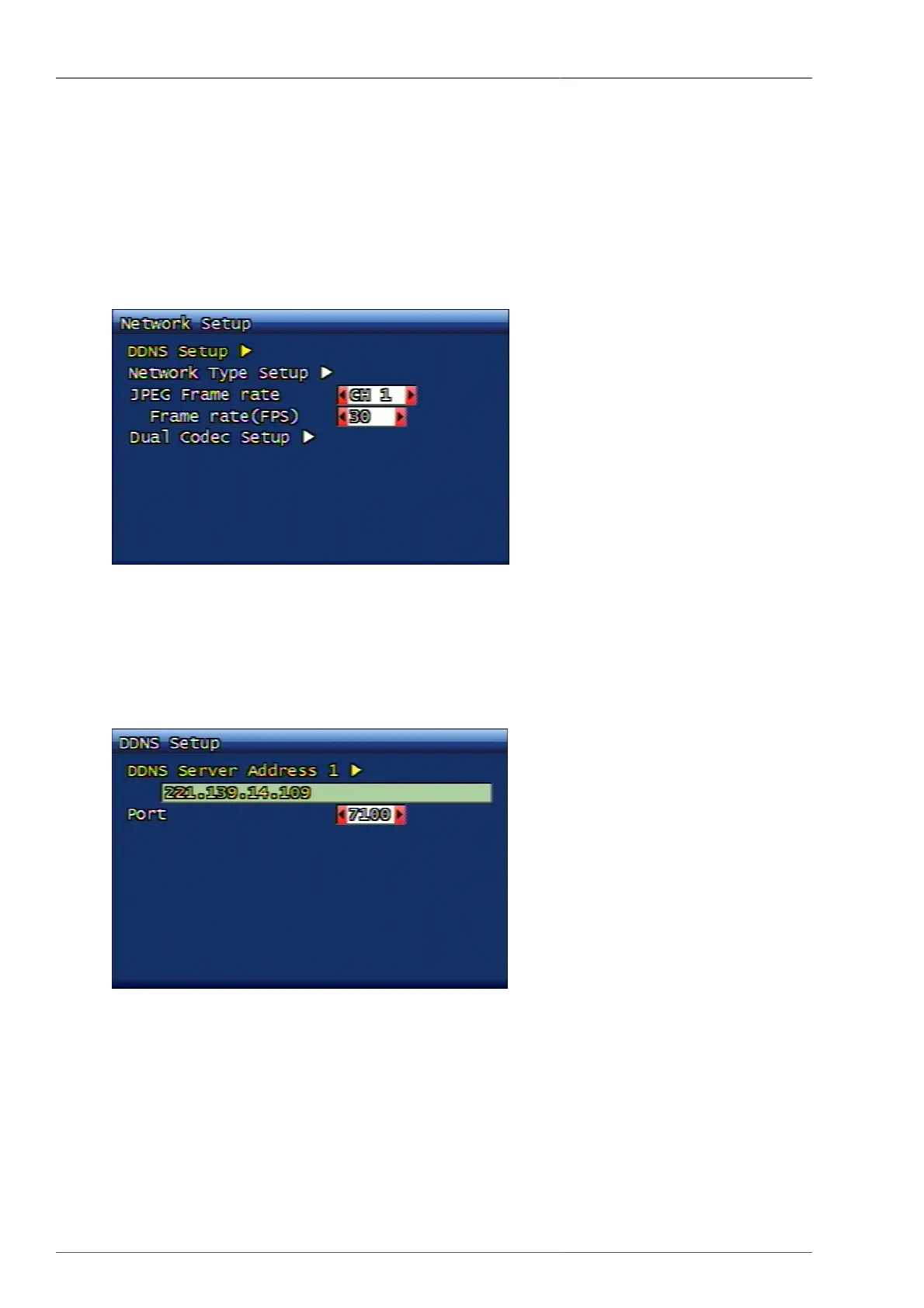 The engaged DDNS (Dynamic Domain Name System) server address and port number needs to be set up. The