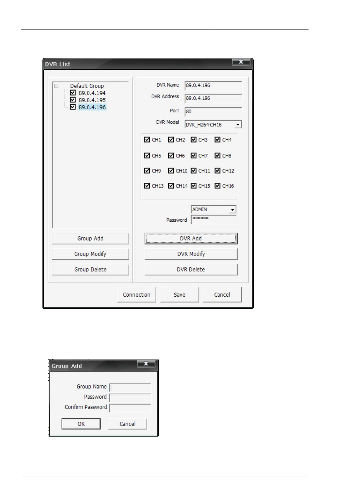 DVR list on its right side : This is to show the Tree List to show you the saved DVR list.