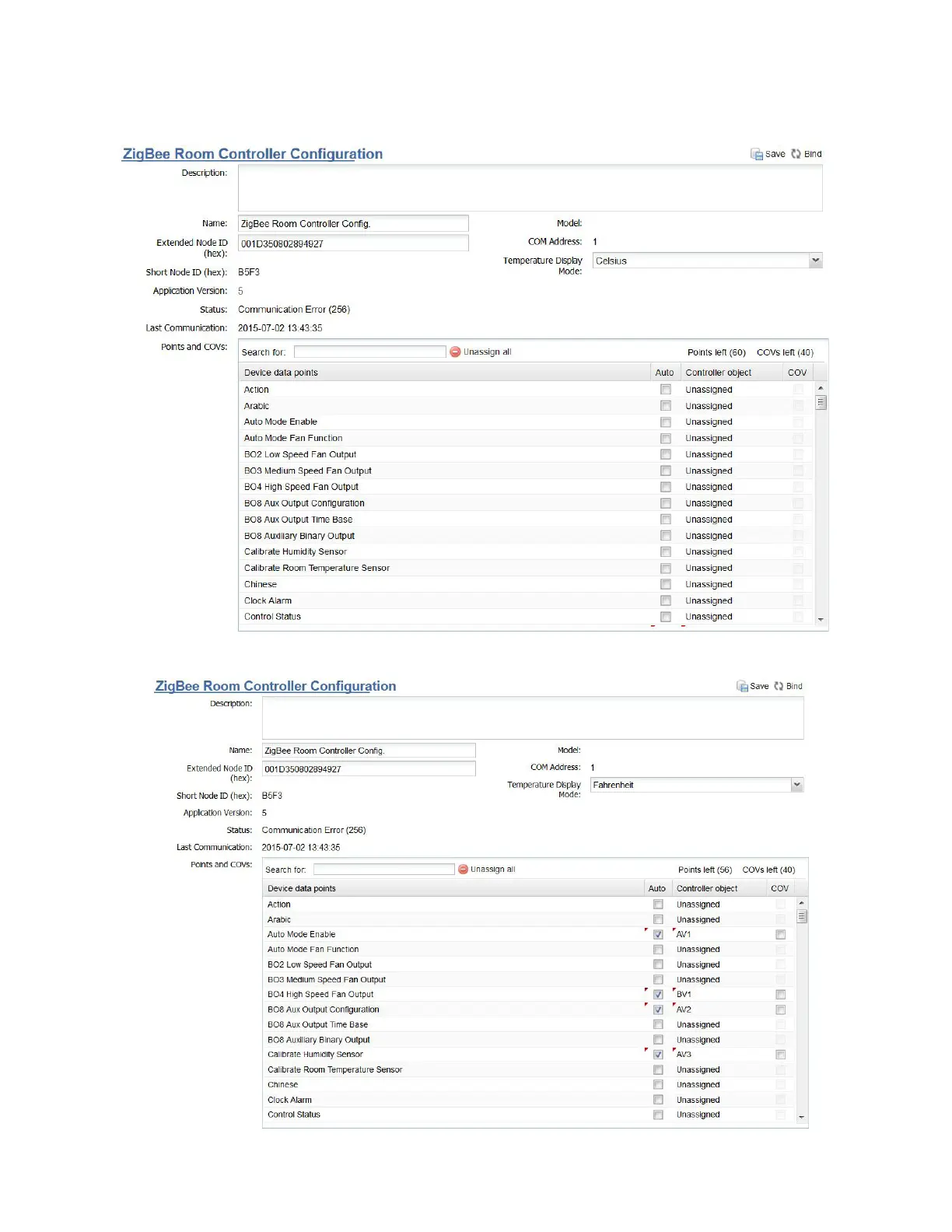 2. Toggle any box under Controller object to assign any Device data point up to a maximum of 60.