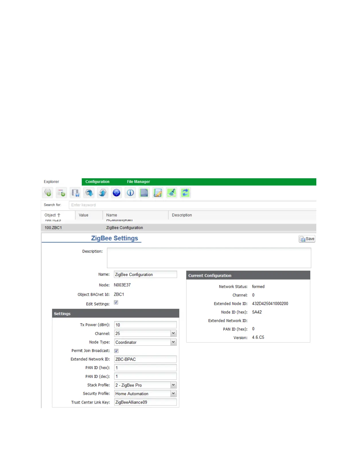 1. Select ZigBee Conguration Object (ZBC1).