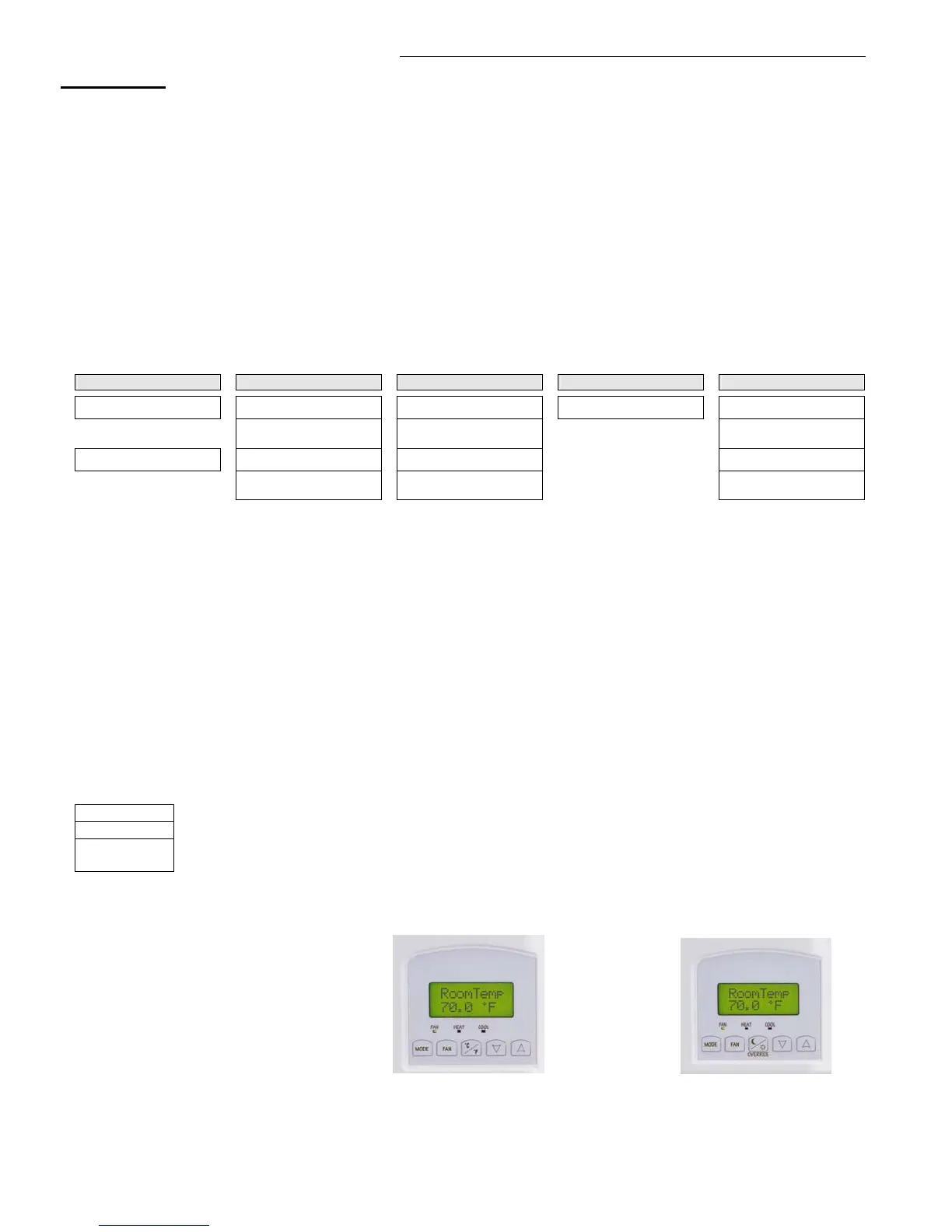 The thermostat features a two-line, eight-character display. There is a low level backlight level that is always active and