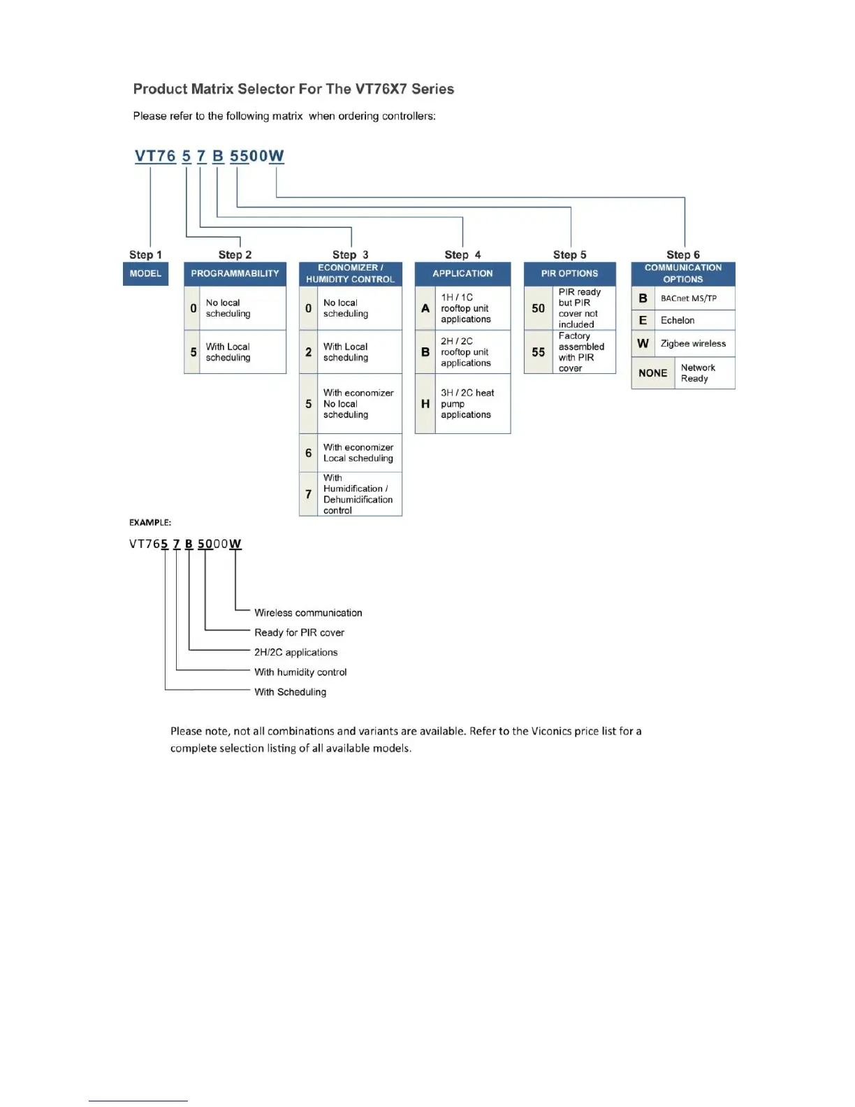 Viconics VT7600A - Model Chart